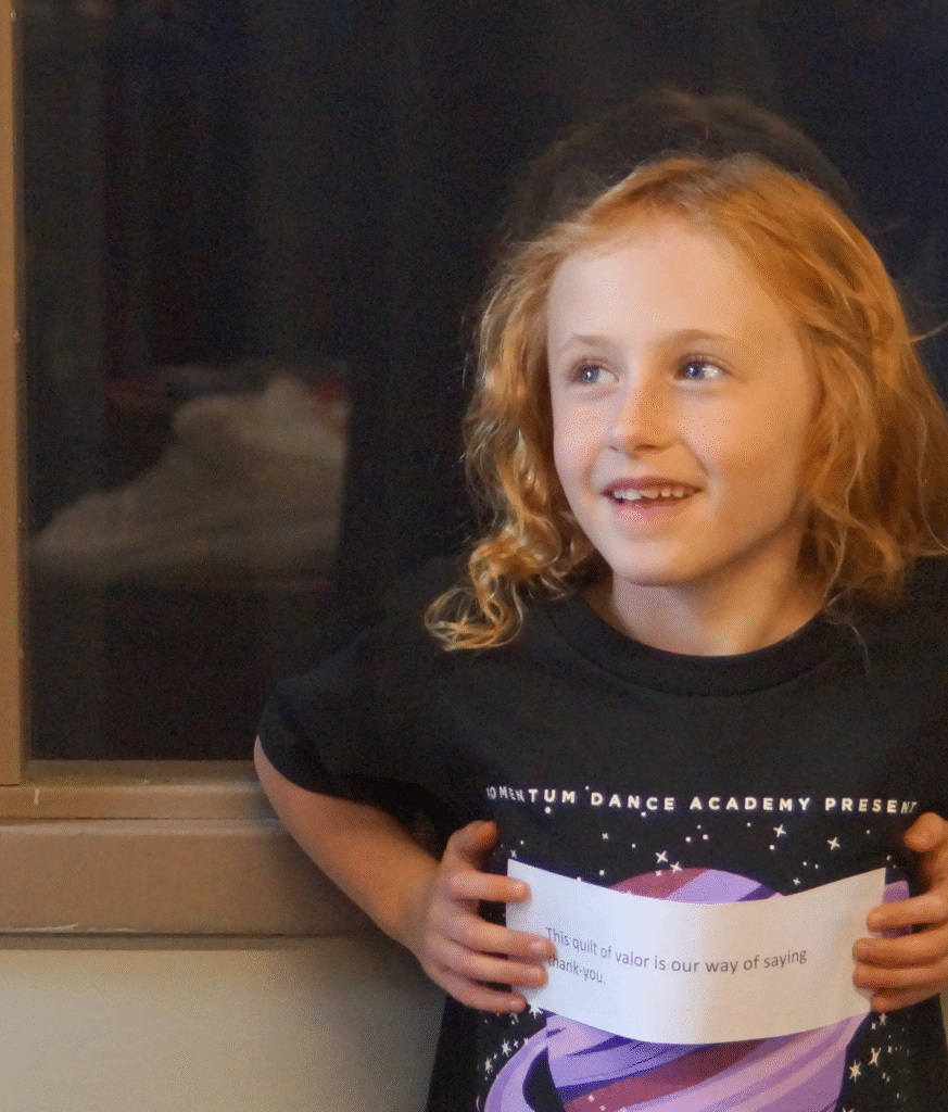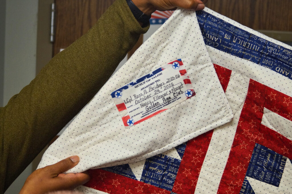 The reason for the gathering was tearfully revealed by his mother, Nancy: Ross was being honored with a Quilt of Valor, a handmade quilt awarded to a Service Member or Veteran who has been touched by war. The quilt is a physical embodiment of a thank you for your service to our country.